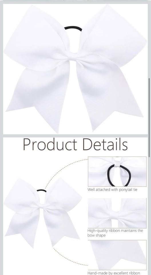 - Large Cheer Bows: The jumbo 8 inch solid color cheer hair bows are made by 3 inches width grosgrain ribbon with a ponytail holder in back, a good hair accessories for girls child kids ponytail Message, WhatsApp or call 751-4661 for more info and delivery and pickup options.