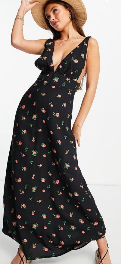 ASOS by Design Black with Red Flowers Plunge Maxi Dress