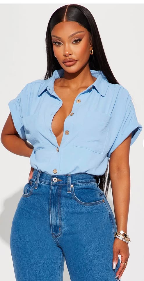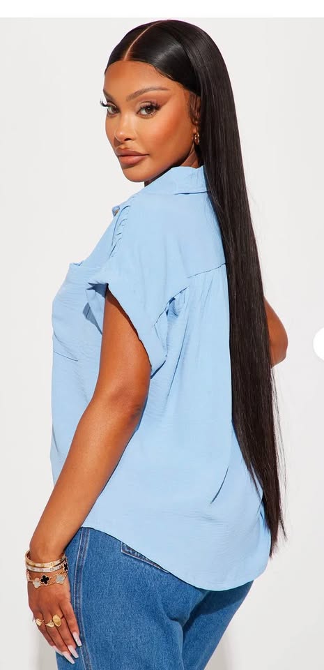 Available In Blue. Shirt Short Sleeve Collar Button Down 2 Front Pockets 100% Polyester Imported