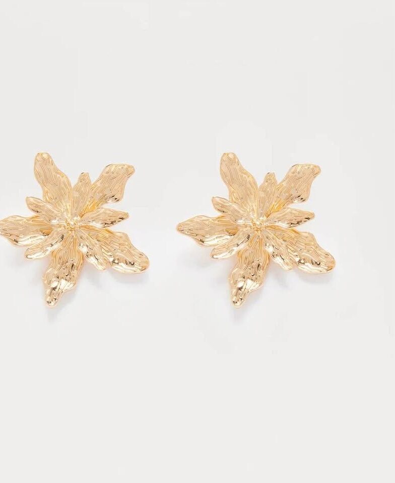 Available In Gold. Drop Earrings Floral Design Post Back Closure Oversized Metal Final Sale Imported