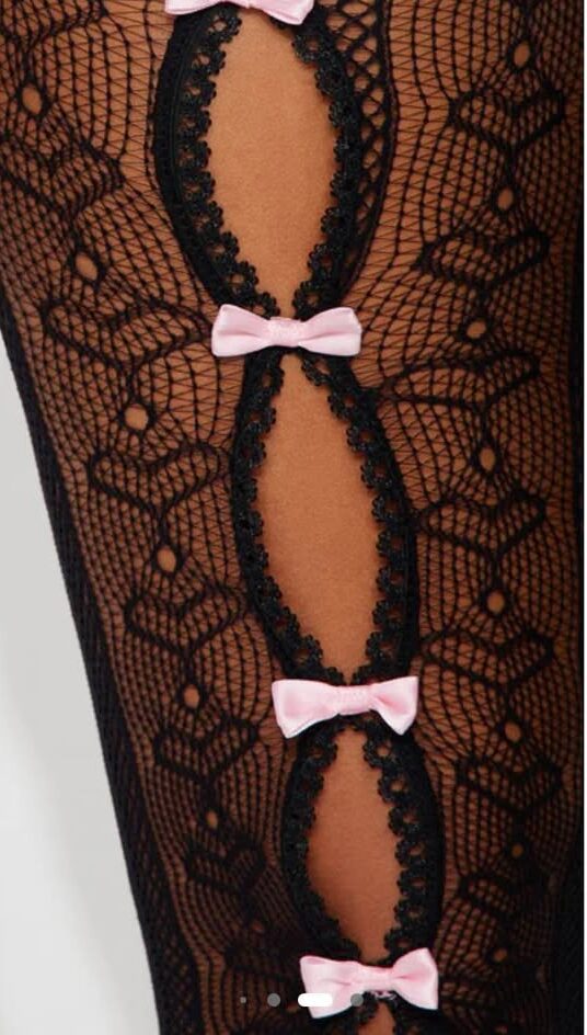 Available In Black. Fishnet Tights Cut Outs Bow Detail Full Length Stretch Final Sale 95% Nylon 5% Spandex Imported