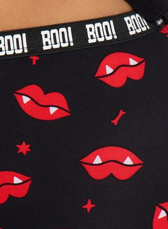 - Available In Black/Red. Halloween PJ Set Tank Top Verbiage Boyshorts Halloween Print Elastic Waistband Button Details Stretch Final Sale Self : 95% Polyester 5% Spandex Imported