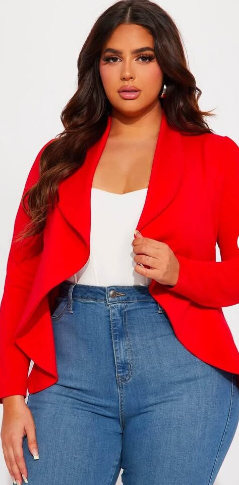 • Available In Royal (Large and XL) And Red. Open Front Lapels Asymmetrical Hem Disclaimer: