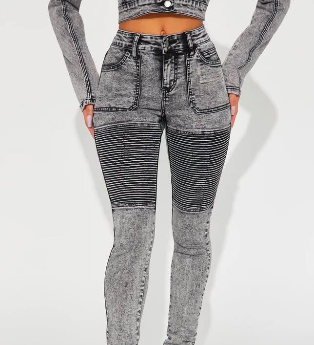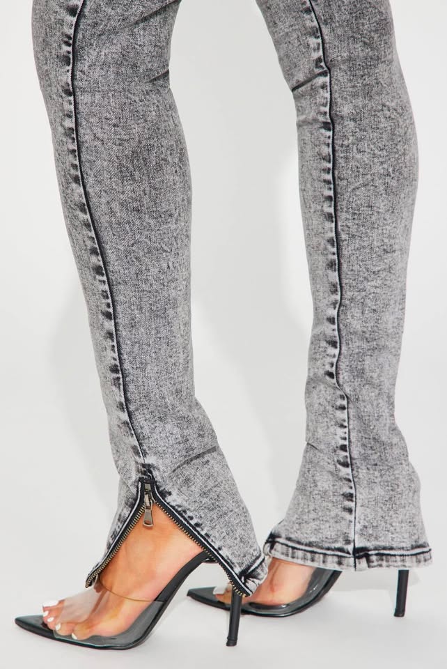 - Available In Acid Wash Grey. Pair With Moto Madness Denim Jacket Skinny Jean Pockets Moto Detail Zip Hem 34″ Inseam 10″ Mid Rise Medium Stretch Disclaimer: Due To The Specialized Wash Process, Each Garment Is Unique. 68% Cotton 27% Polyester 3% Viscose 2% Spandex