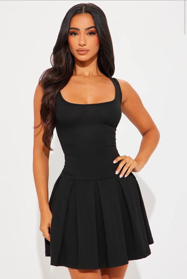 Fashion Nova No Sweat Pleated Mini Dress (Black – Large and XL)