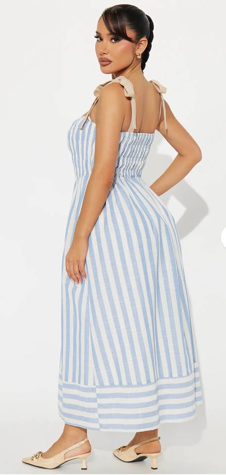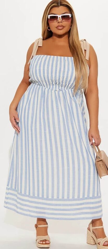 Fashion Nova Ozzy Striped Linen Midi Dress – Blue/Combo (Large)