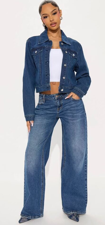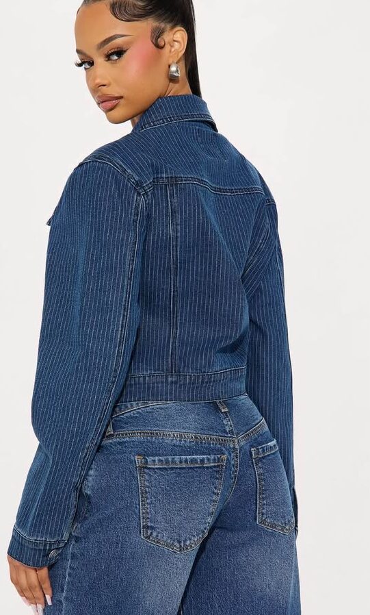 Fashion Nova Paloma Pinstripe Denim Jacket – Dark Wash