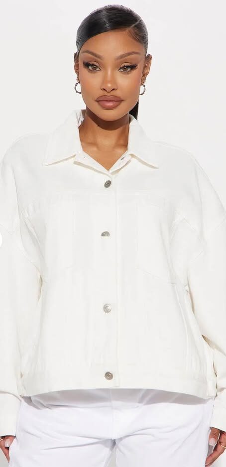 Fashion Nova So Laid Back Washed Denim Jacket – Off White (Medium)