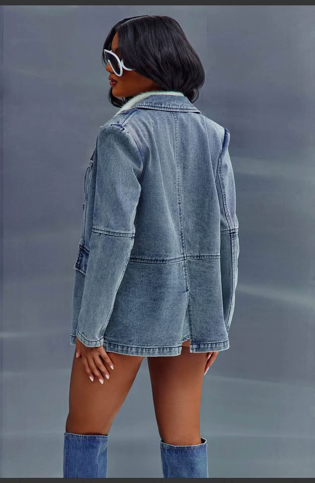 Got Your Mind Racing Denim Blazer (Large) quantity