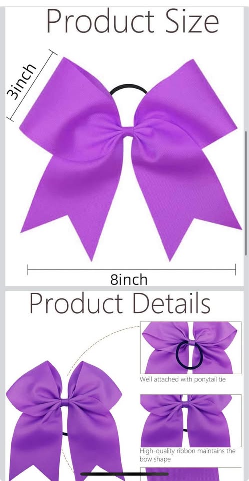 - Large Cheer Bows: The jumbo 8-inch solid color cheer hair bows are made by 3 inches width grosgrain ribbon with a ponytail holder in back, a good hair accessories for girls child kids ponytail Message, Whatsapp, or call 751-4661 for more info or pickup and delivery arrangements.